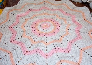 Welcome an infant into the world with this Peachy Keen Round Ripple. This round ripple baby afghan pattern is easy and fun to make, even if you've never crocheted an afghan before. Make this delicate crochet blanket for your next baby shower. The mother-to-be will be so grateful to receive a handmade gift that is thoughtful and functional. Is the bouncing baby going to be a boy? No problem! Just swap in blue and yellow yarn to make this an afghan that a boy would love to cuddle up in.