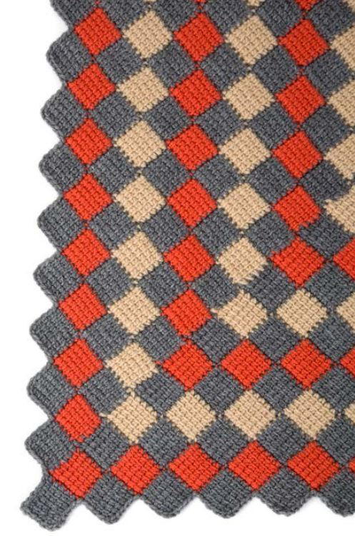 Take a trip with the Around The World Tunisian Throw! Cute little squares are worked in rounds to achieve this great woven look. Try this Tunisian crochet blanket pattern in bright colors or neutrals and you'll still love the result. This Tunisian afghan will look great in so many different homes. The color combination of the coral, cream, and gray complement each other beautifully, however, a lot of other color combinations would look equally elegant. But don't fret about choosing just one combination because this crochet afghan pattern is so fun to make that you'll definitely want to make several.