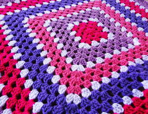 I love the combination of colors in this pretty, girly afghan. I'm pleasantly surprised by how modern this granny stitch blanket looks.