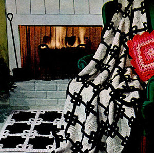 This striking design is absolutely beautiful and I can not wait to begin making it! My current dilemma is whether to start with the rug or the throw, lol! I am changing the colors just slightly and will be using a dark charcoal and very slightly off white just to complement our family room color scheme and I am going to be making the rug quite a bit bigger than shown. Oooh, I am itching to start and will post a photo when I am done, if my PC allows!