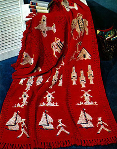First impression, this afghan is for boys with the boat and airplane design in red background. Lovely! Here'sthe link to the pattern http//freevintagecrochet.com/afghan-patterns/star2 == 02/childs-afghan-pattern