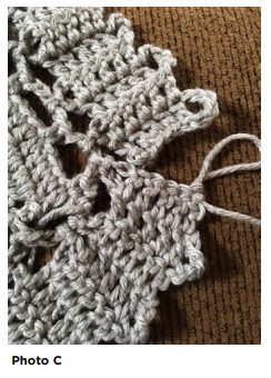 Rows 328–332: Repeat Rows 66–70. Fasten off, leaving an 8" (20.5 cm) tail. (See Photo C)