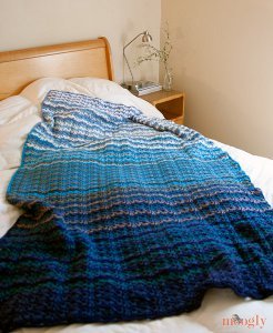 The Vintage Crochet Wobble Afghan is an old pattern that has been re-imagined and created into a new design. Learn how to crochet this free vintage pattern and read how this pattern came to be when you start this project. Crocheted in eight different shades of blue and white, this afghan has a wonderfully ombre effect which gives it a modern look as well.