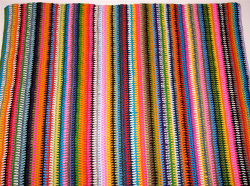 The saying then age striped blanket or app again mine started out with approximately 300 chain afghan double crochet. 5 stripes starting with a Caron Country Rose then, changing over two red heart super saver white going a with double crochet, then going as wide as you want . You can have it as why do you want either for a twin double or king or queen size bed even for a couch I'm wart. I'm working to make this for a dorm bed for my niece for her college dorm in the fall. The vintage stripe is the only way to go. When I finish the complete Afghan I will send the completed picture.